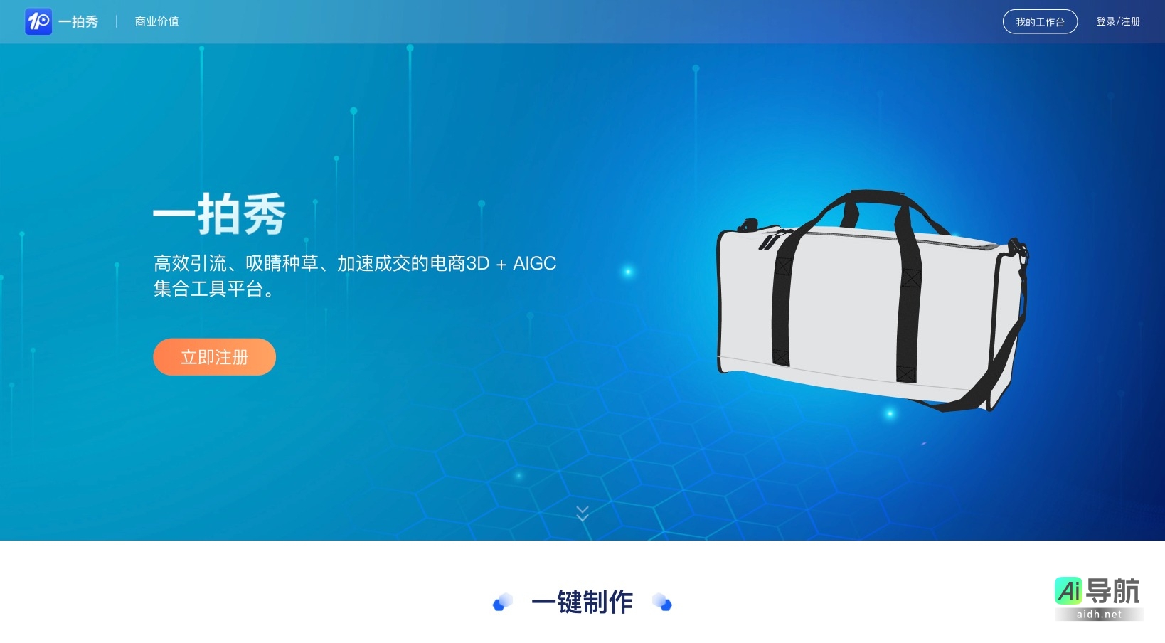 一拍秀是一款高效的电商3D与AIGC集合工具平台,旨在帮助用户提升品牌效益和商品销量。该平台通过创新的功能,提供了一系列便捷的工具,适合各类电商商家使用。以下是一拍秀的主要特点和功能介绍: