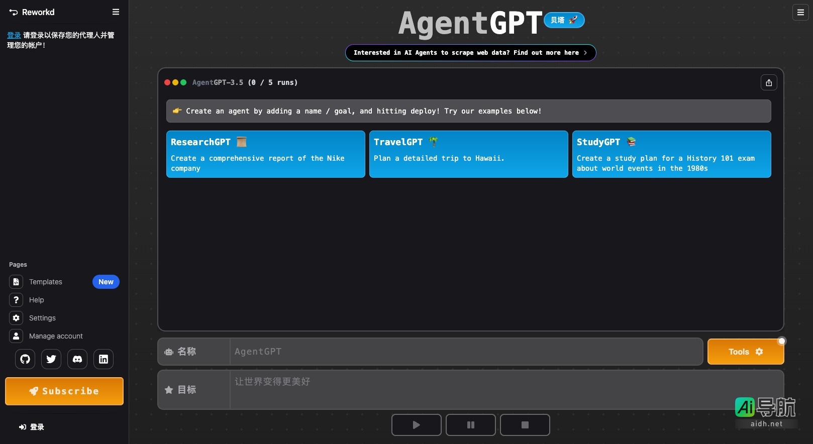 - 免费试用:用户可以免费试用 AgentGPT 的基本功能,体验智能代理的便捷。