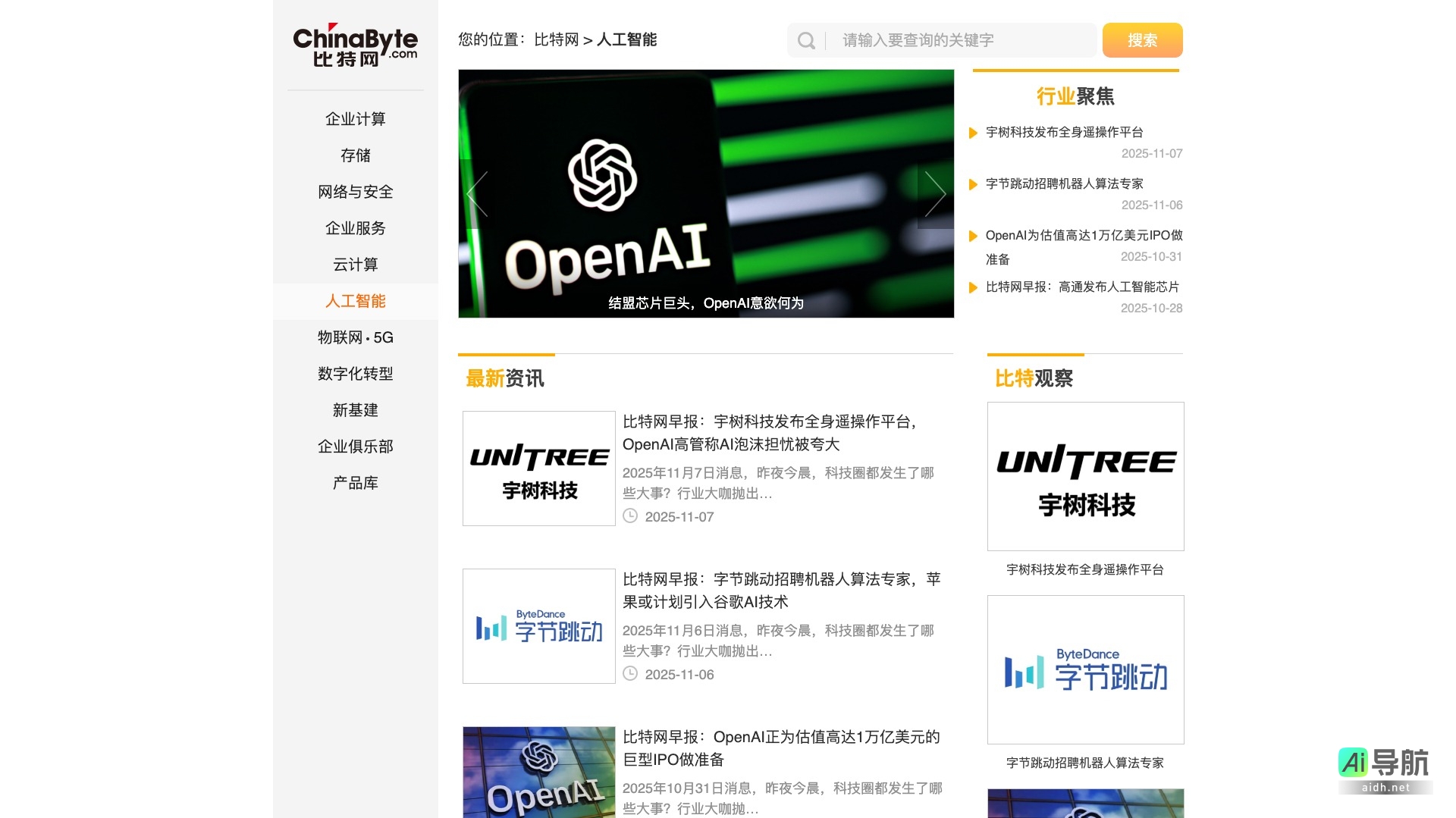 比特网人工智能频道是一个专注于人工智能领域的综合性信息平台,致力于为用户提供最新的行业动态、技术趋势和深度分析。该频道涵盖了多个与人工智能相关的主题,以下是其主要特点和功能: