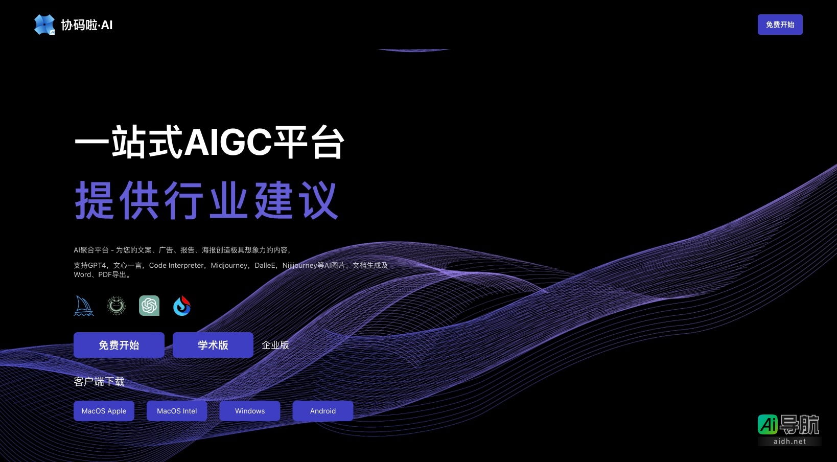 协码啦是一个一站式AIGC平台,致力于为用户提供多样化的AI工具和服务,帮助用户在文案、广告、报告、海报等方面创造出极具想象力的内容。平台支持多种先进的AI技术,包括GPT-4、文心一言、Code Interpreter、Midjourney、DalleE和NijiJourney等,用户可以轻松生成高质量的文档和图片,并支持Word和PDF格式的导出。