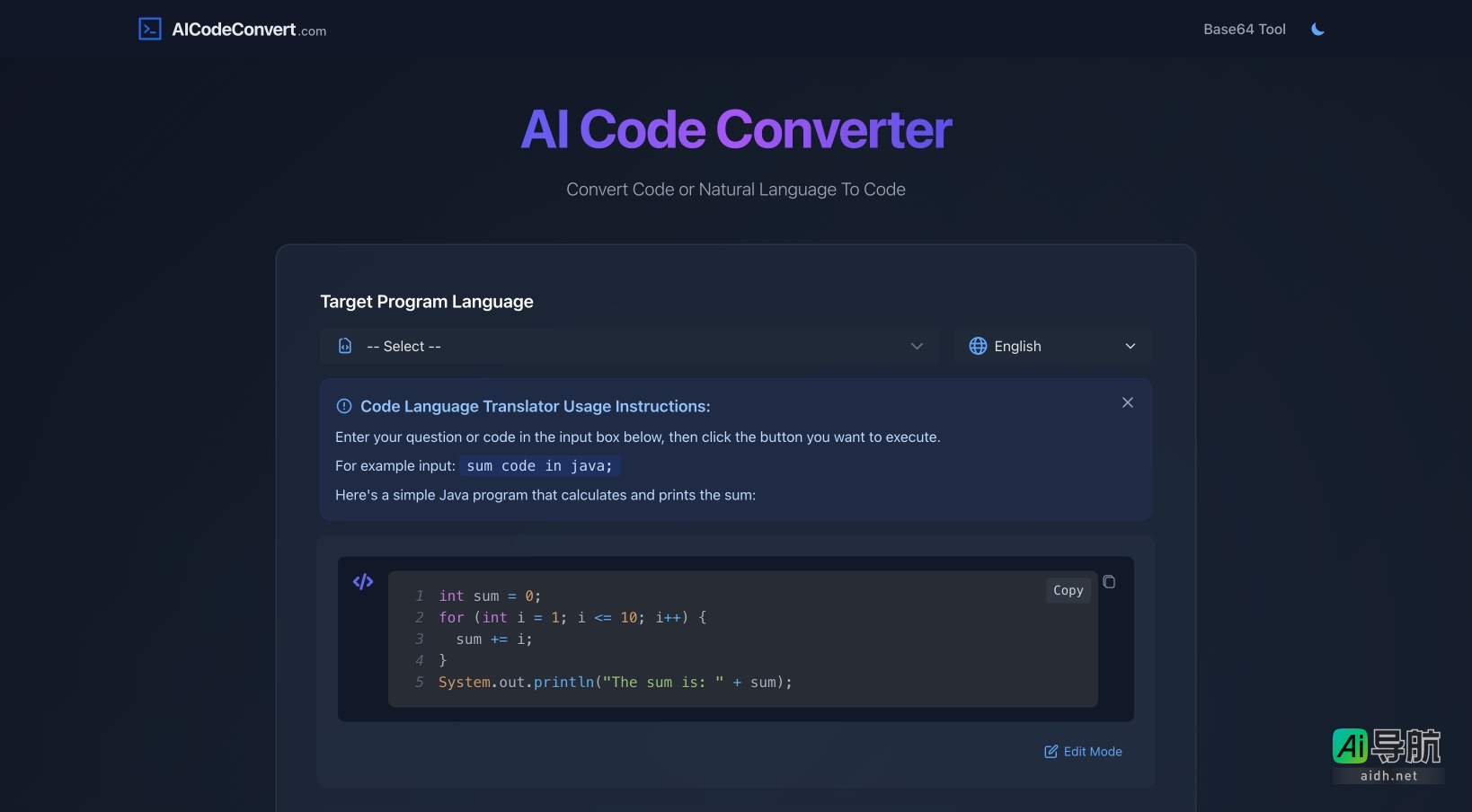 AI Code Converter的内容由AI导航(aidh.net)整理