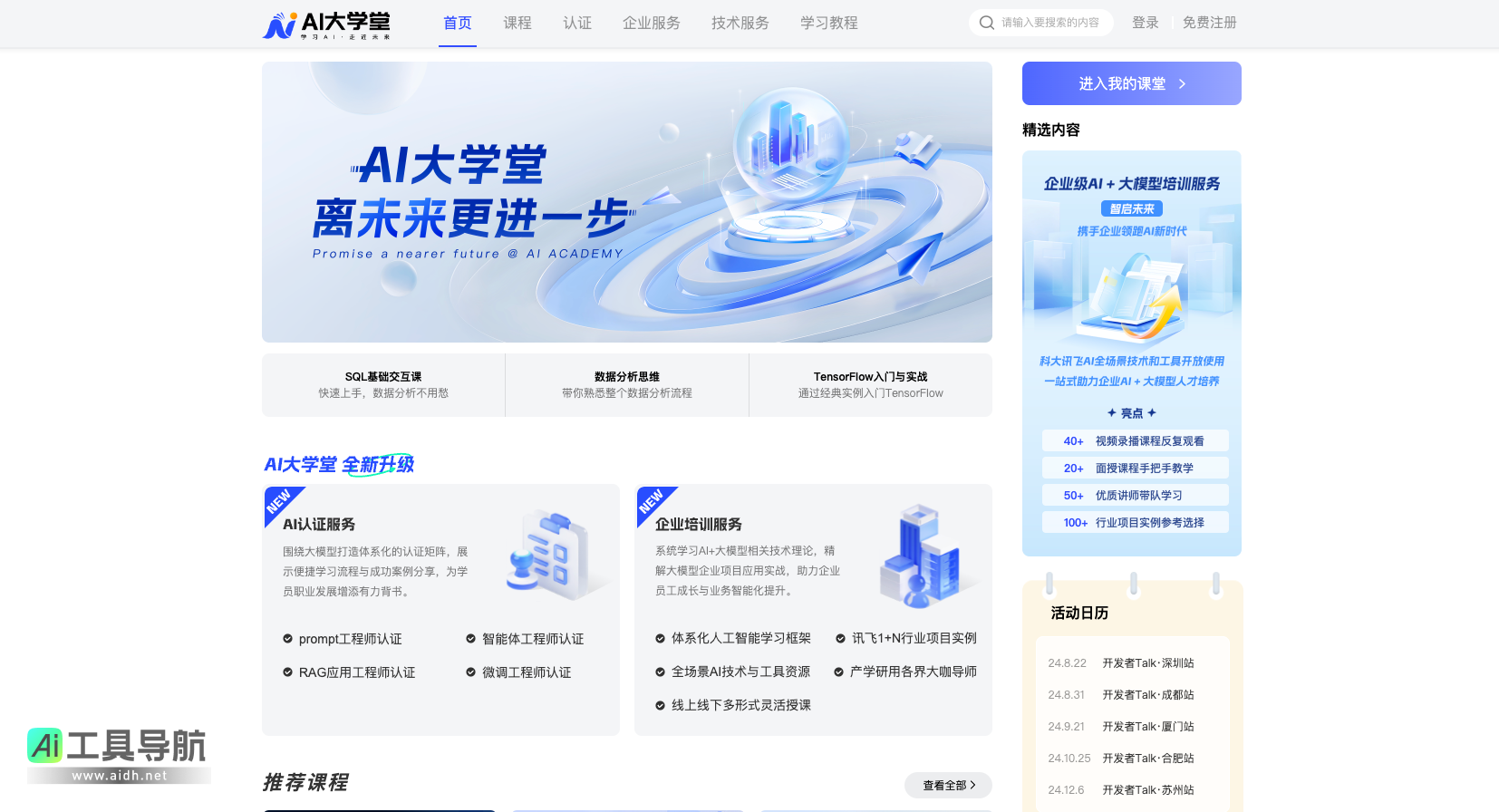 AI大学堂是科大讯飞打造的AI在线学习平台,为各行业各领域的技术人才提供人工智能培训,人工智能学习,编程入门自学,计算机编程入门,Python数据分析等课程,旨在为AI领域开发者、爱好者提供专业的课程、资源及服务支持