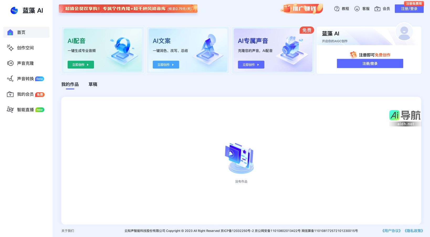 蓝藻AI是一款专注于人工智能生成内容的创作平台,旨在为用户提供便捷的音频和文案创作工具。以下是蓝藻AI的主要功能和特点: