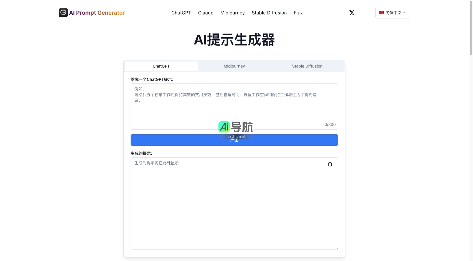 AI Prompt Generator在线AI提示词生成器工具,帮助用户为不同的AI模型生成精准的提示词。工具支持ChatGPT、Claude、Midjourney和Stable Diffusion等多种模型。用户只需输入需求,AI Prompt Generator会基于高级算法处理输出优化的提示词。适用于个人和商业用途,支持所有设备使用。不会存储任何个人数据,保证了用户隐私和安全。