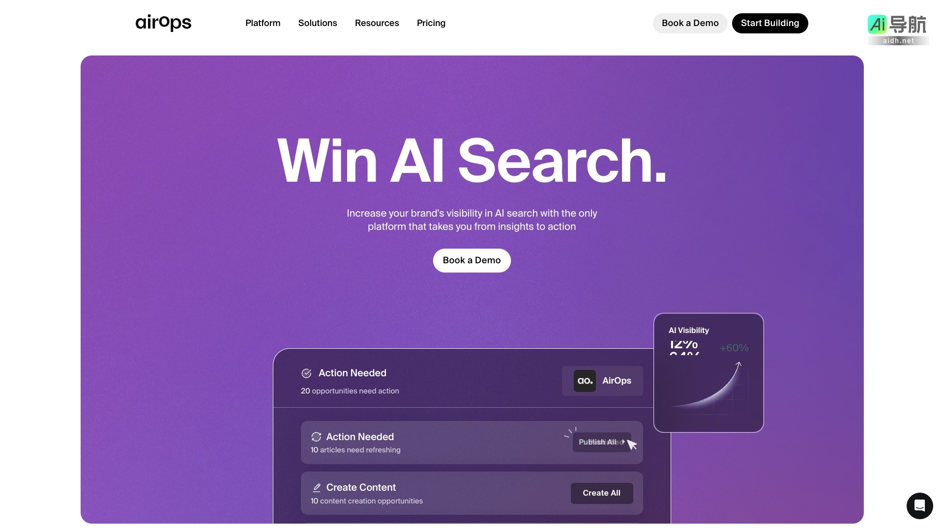 总之,AirOps不仅是一个内容创作工具,更是一个完整的内容协调系统,帮助品牌在AI驱动的市场中获得竞争优势。通过其独特的功能和服务,AirOps致力于为用户提供实实在在的结果,推动业务增长。