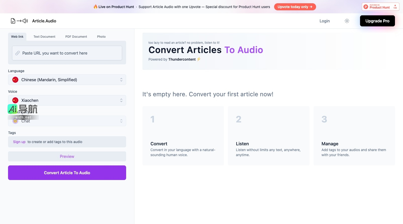 Article Audio 还提供了升级选项,用户可以选择 Pro 版本,享受更多高级功能和服务。通过注册账户,用户可以轻松管理自己的音频文件,并与朋友分享,提升使用体验。无论是学习、工作还是娱乐,Article Audio 都是一个不可或缺的好帮手。