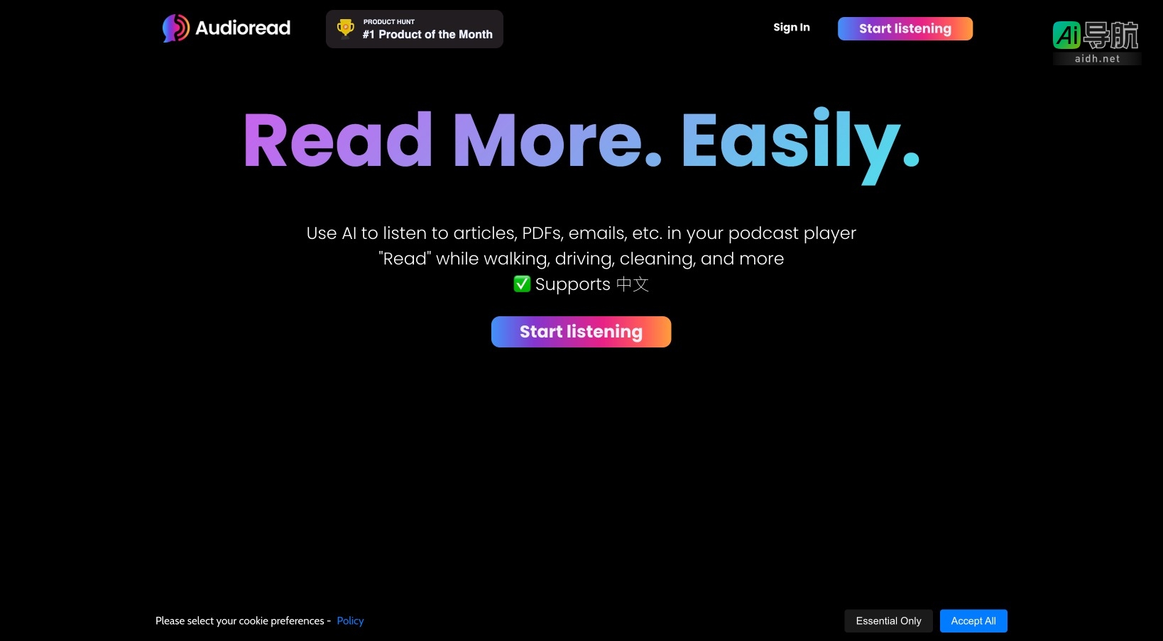 Audioread是一款利用人工智能技术将文本转换为音频的创新工具,旨在帮助用户在忙碌的生活中更高效地获取信息。无论是文章、PDF文件还是电子邮件,Audioread都能轻松将其转化为可在任何播客播放器中收听的音频,用户可以在走路、开车或做家务时进行“阅读”。