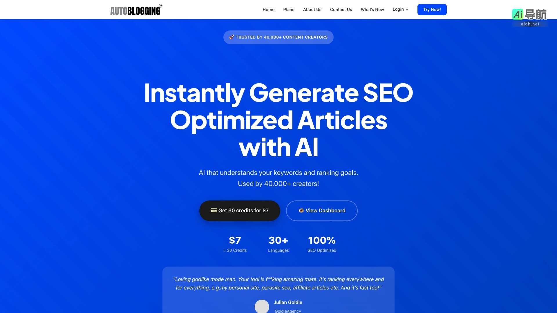 Autoblogging.ai 是一款专为内容创作者设计的人工智能工具,旨在快速生成优化的SEO文章。该平台已经被超过40,000名创作者所信赖,凭借其强大的功能和易用性,帮助用户提升网站的搜索排名和流量。