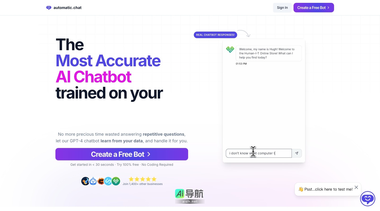 自动聊天是一款基于AI技术的聊天机器人平台,专为希望提升客户互动体验的企业而设计。该平台利用最先进的GPT-4模型,能够快速、准确地回答用户的问题,极大地节省了企业在客户支持上的时间和人力成本。以下是自动聊天的主要特点和功能: