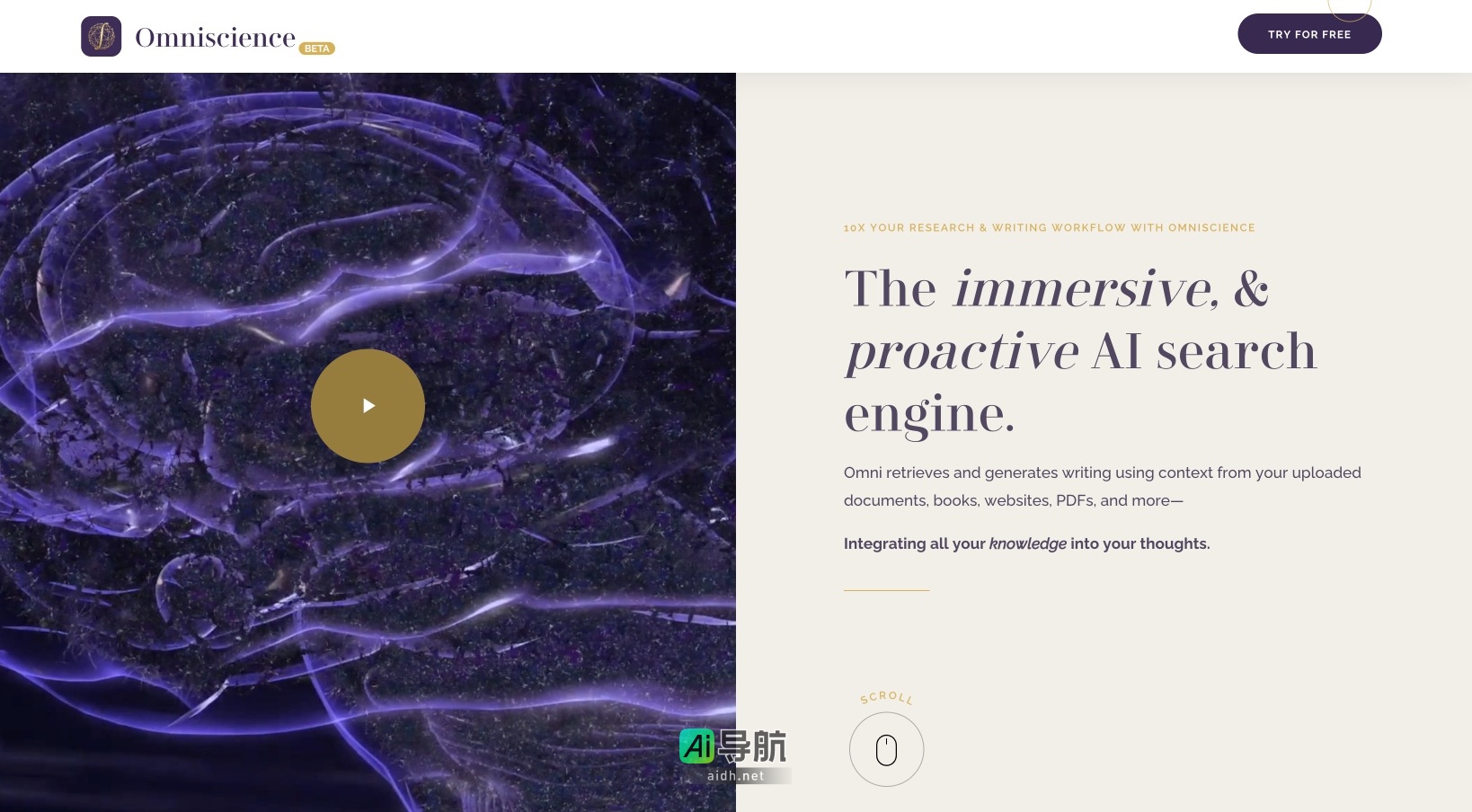 Omniscience是一款创新的AI搜索引擎,旨在提升您的研究和写作效率。通过整合您上传的文档、书籍、网站、PDF等多种知识来源,Omniscience能够生成具有上下文的写作内容,从而将所有知识融入您的思维中。以下是Omniscience的主要功能和特点: