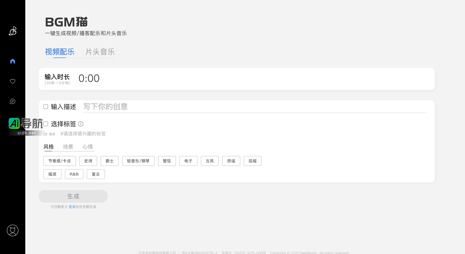 BGM猫是一款专注于视频和播客配乐的AI定制背景音乐下载平台,旨在为用户提供便捷、高质量的音乐生成服务。用户只需简单几步,即可生成符合需求的音乐,适用于各种场景。