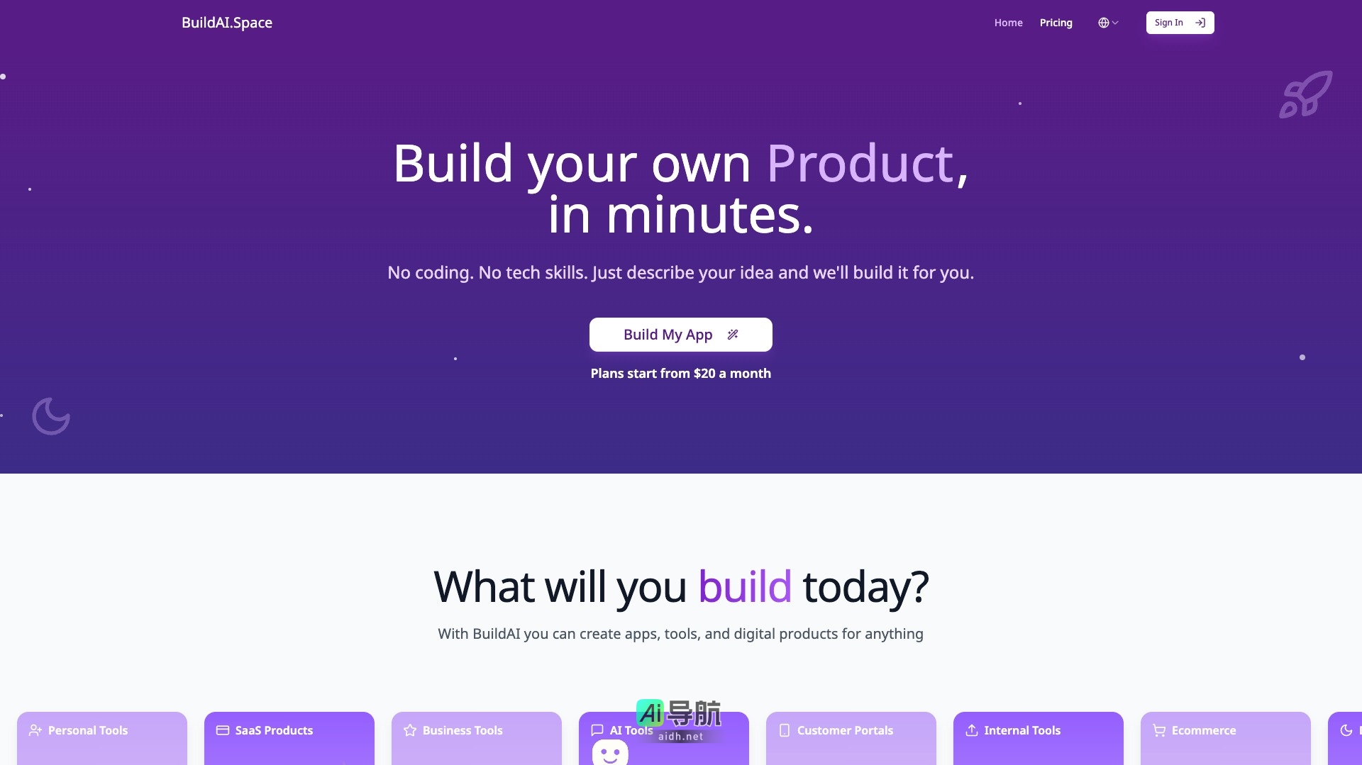 BuildAI.Space 是一个创新的平台,旨在帮助用户在短时间内构建自己的数字产品,无需任何编码或技术技能。用户只需描述自己的想法,BuildAI 就能为其实现。以下是该平台的主要特点和适用人群:
