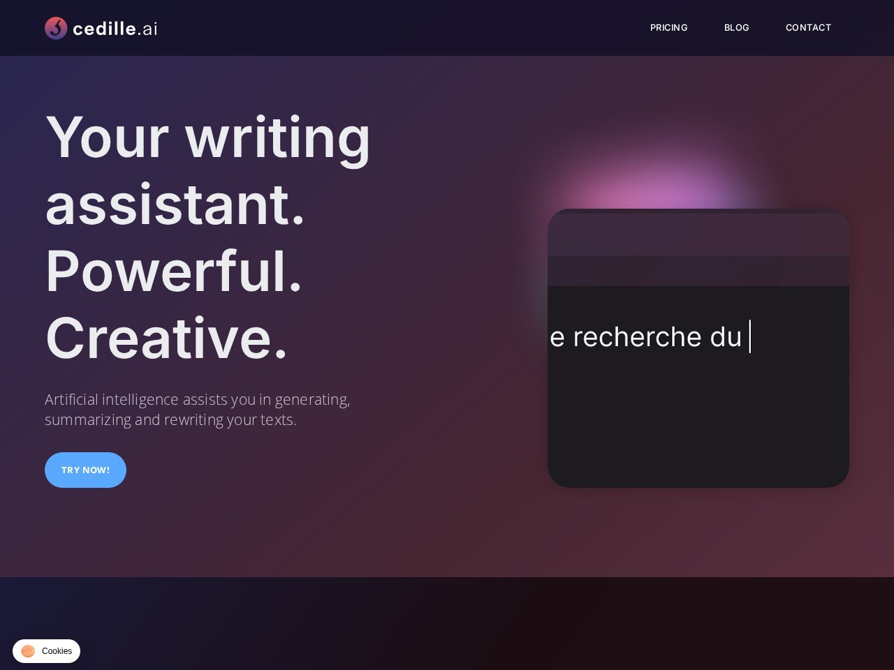 Cedille还提供了不同的定价套餐,以满足不同用户的需求。用户可以选择适合自己的方案,享受相应的服务和权益。通过Cedille,写作变得前所未有的简单和高效,适合各类写作者和需要文本生成的专业人士。