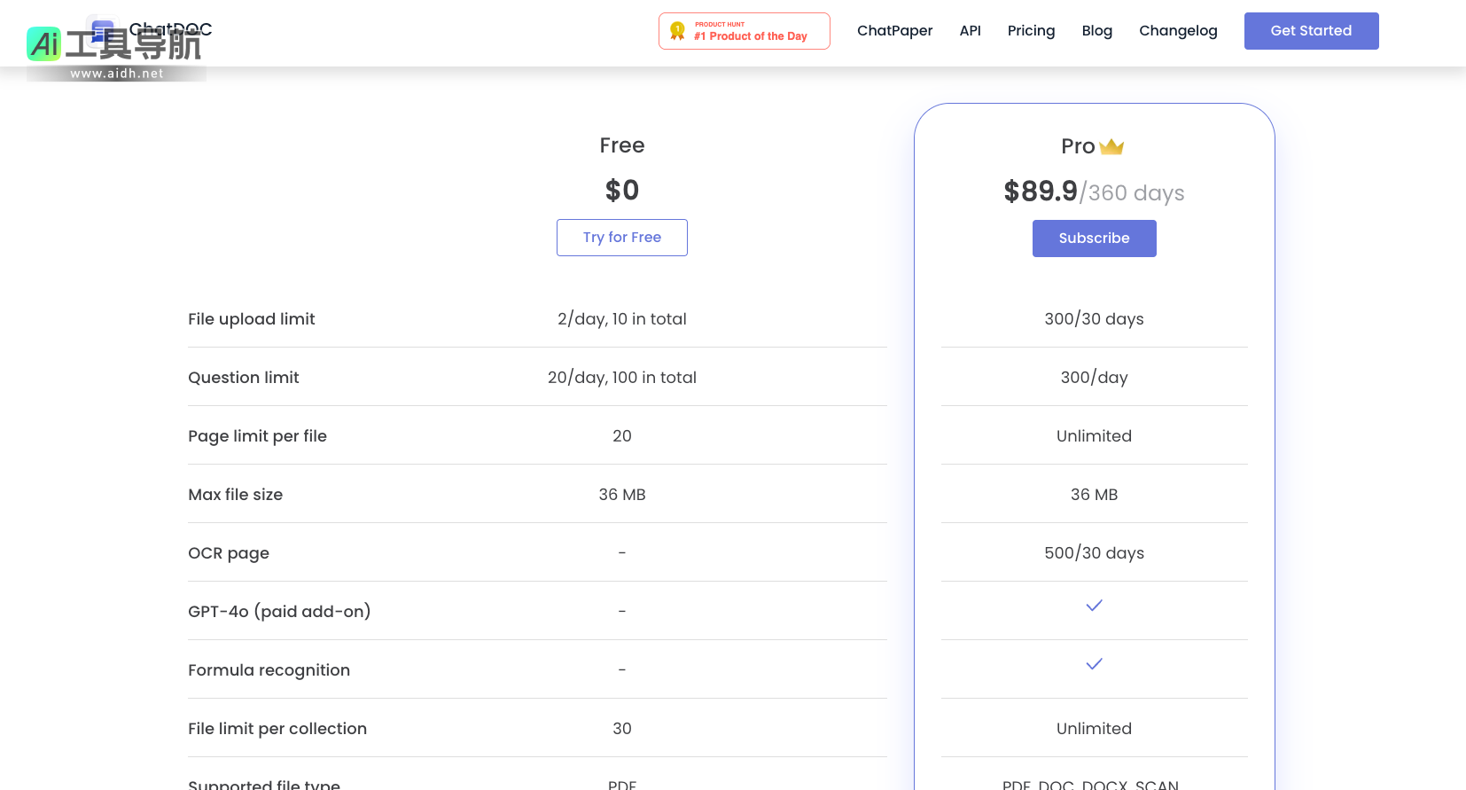ChatDOC提供了免费和付费两种计划供用户选择。免费计划允许用户上传最多20页的文档,并支持每天2次的文件上传。对于需要更高使用额度和更强大功能的用户,ChatDOC也提供了多种付费计划,用户可以根据自己的需求选择合适的套餐。