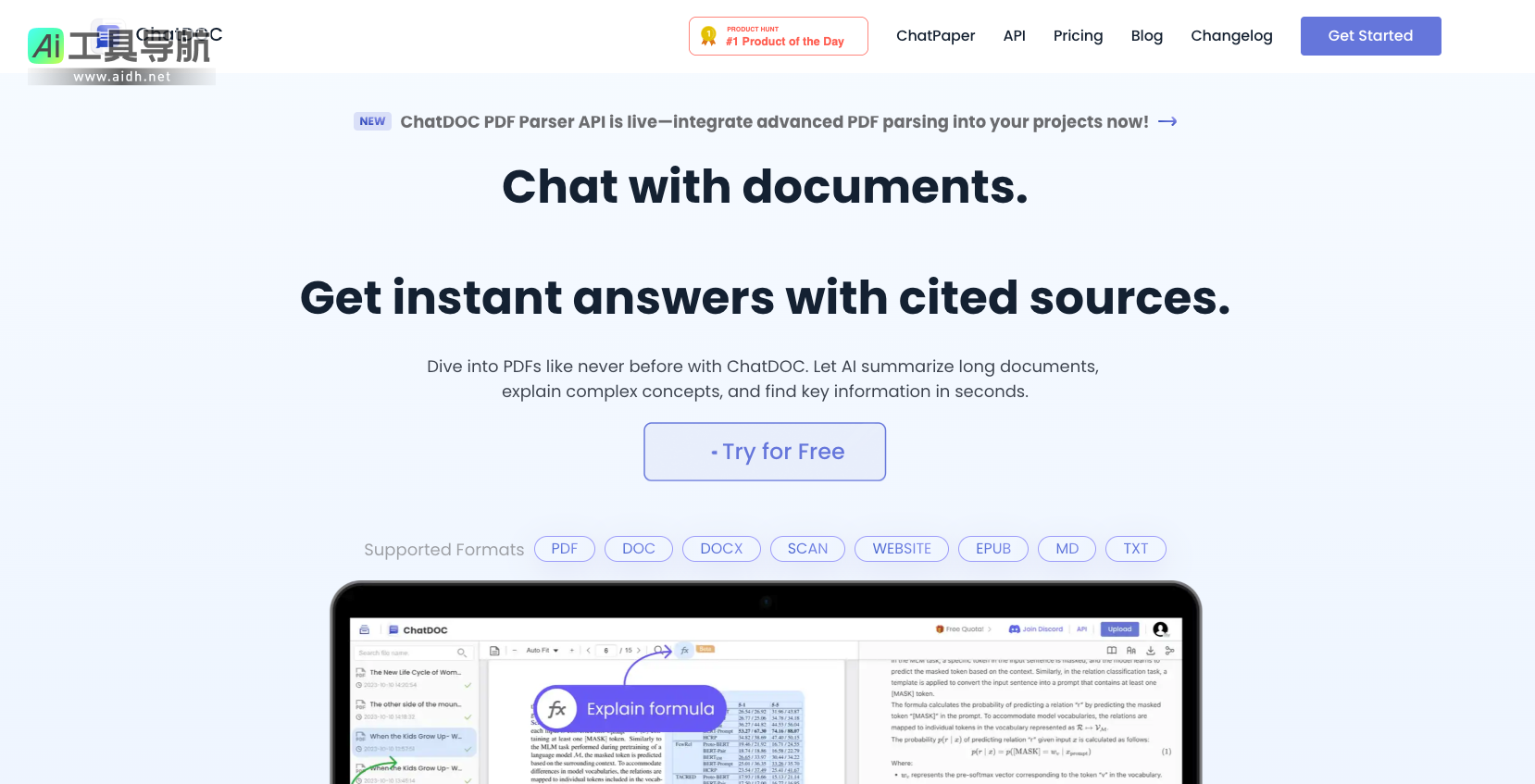 用户只需上传PDF文件,输入问题,ChatDOC便会从文档中提取相关内容并作出回答。无论是对文章的总结,还是对特定段落的详细解释,ChatDOC都能够提供精准且迅速的解答。此外,ChatDOC还支持对文档中的表格、图片甚至数学公式的分析,进一步扩展了其功能的多样性。