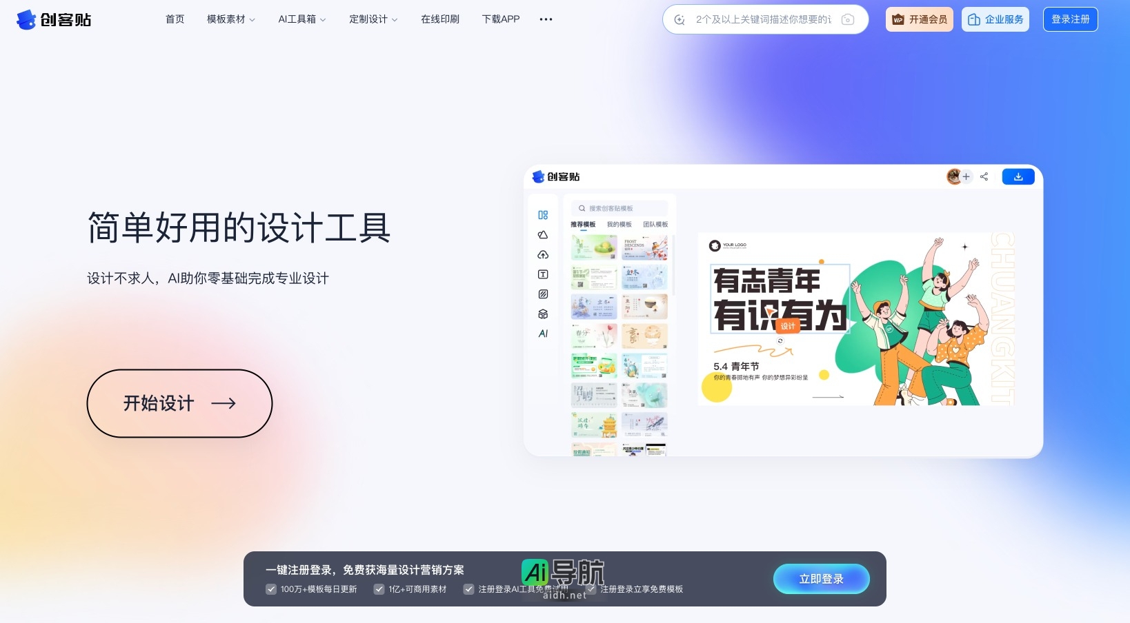 创客贴是一款简单易用的在线设计工具,旨在帮助用户轻松完成专业设计,特别适合零基础的用户。该平台通过AI技术,提供了丰富的设计资源和模板,满足不同用户的需求。以下是创客贴的主要特点和功能介绍:
