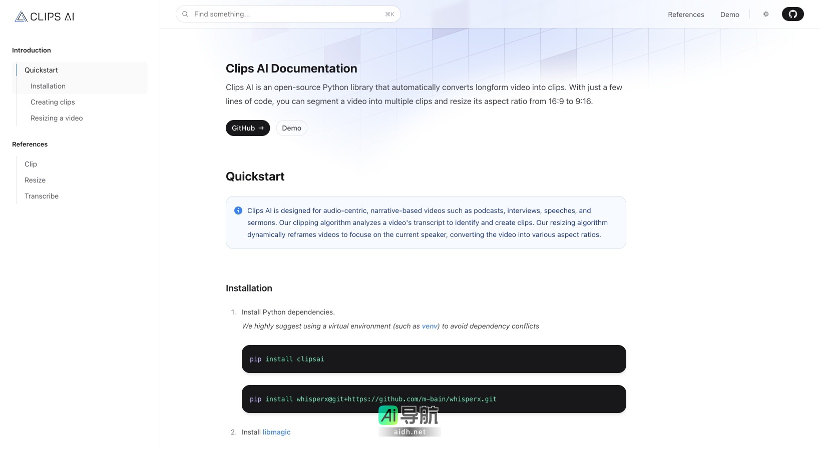 Clips AI是一款开源的Python库,专门用于将长格式视频自动转换为多个短片段。它的设计理念是为音频中心的叙事型视频提供便利,适合用于播客、访谈、演讲和讲道等场景。以下是Clips AI的主要功能和使用方法: