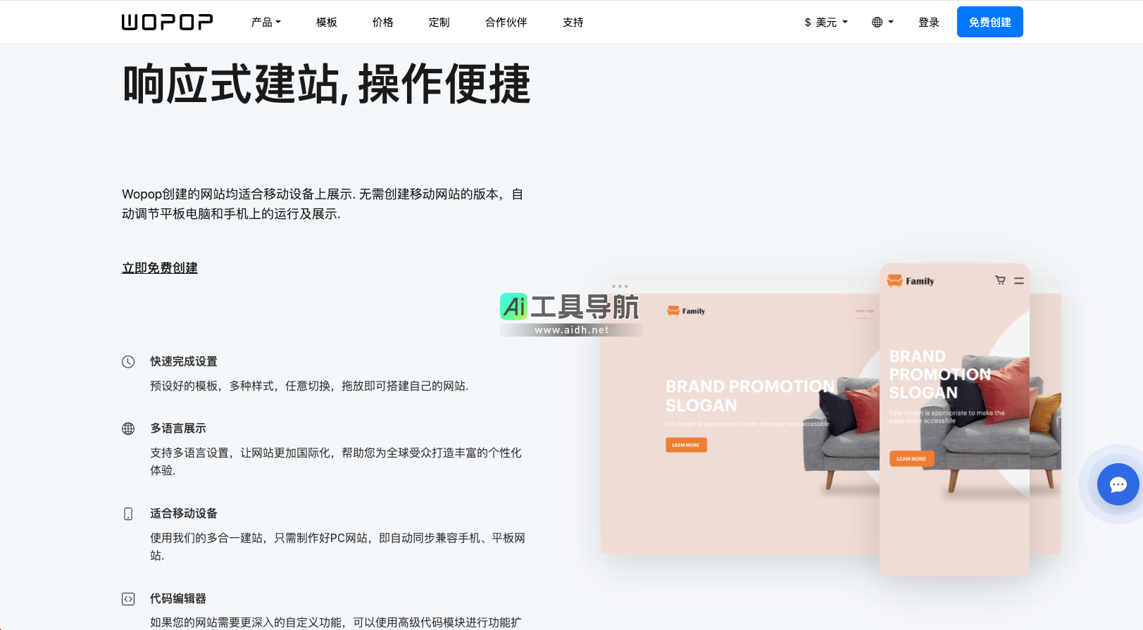 在数字化时代,拥有一个功能完善、美观且能快速响应的个人或企业网站已成为在线业务成功的关键。而Wopop作为一款创新型建站平台,通过其简洁易用、功能强大的建站系统,为用户提供了一站式网站建设服务。不论您是刚开始接触建站,还是经验丰富的用户,Wopop都能帮助您轻松搭建网站,无需编程知识,即可迅速发布一个高质量、专业的在线形象。
