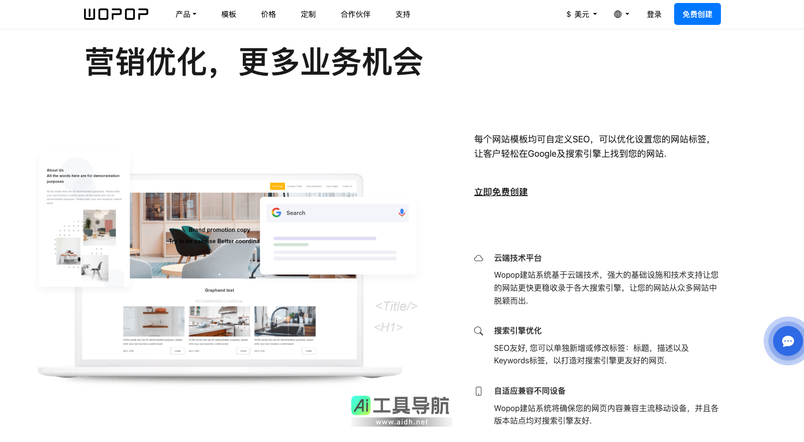 Wopop作为一款功能强大的建站工具,凭借其简单易用、功能全面、SEO友好的特点,已成为越来越多企业和个人用户的首选建站平台。不论您是需要一个展示型网站,还是一个功能复杂的电商平台,Wopop都能为您提供专业的建站服务和全方位的支持。如果您正在寻找一种既省时又高效的建站解决方案,Wopop无疑是您理想的选择。现在就开始您的建站之旅,让Wopop帮助您打造属于自己的成功在线品牌吧!