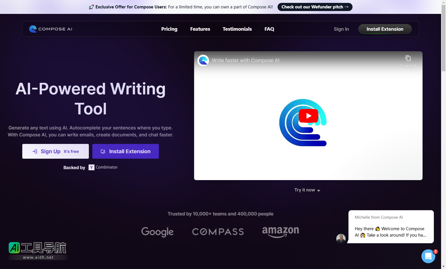 ComposeAI是一款由AI驱动的写作工具,旨在加速用户的写作过程,帮助减少打字时间,并提高工作效率。其主要功能包括自动完成句子、智能化建议、以及无缝集成到现有的工具和平台中,适合需要频繁书写和生成文档的用户。