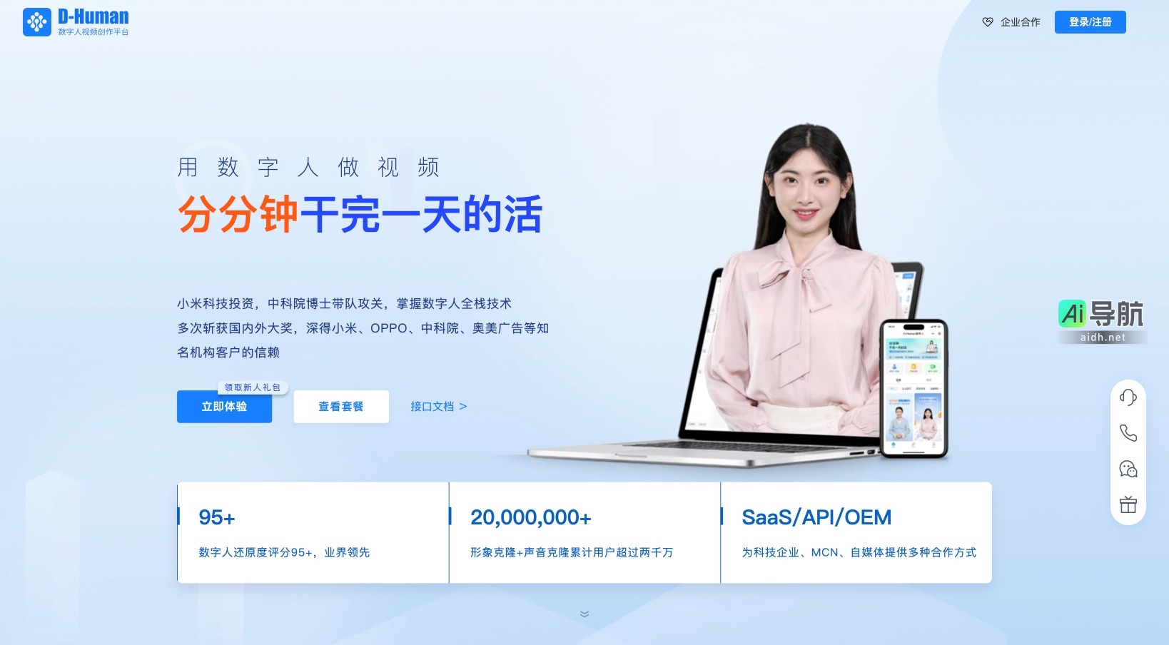 D-Human数字人是一家专注于数字人技术的创新平台,致力于为用户提供高效、便捷的视频制作服务。该平台的核心技术团队由中科院博士带队,凭借深厚的技术积累和丰富的行业经验,D-Human数字人已经成为业界领先的数字人解决方案提供商。以下是对该平台的详细介绍: