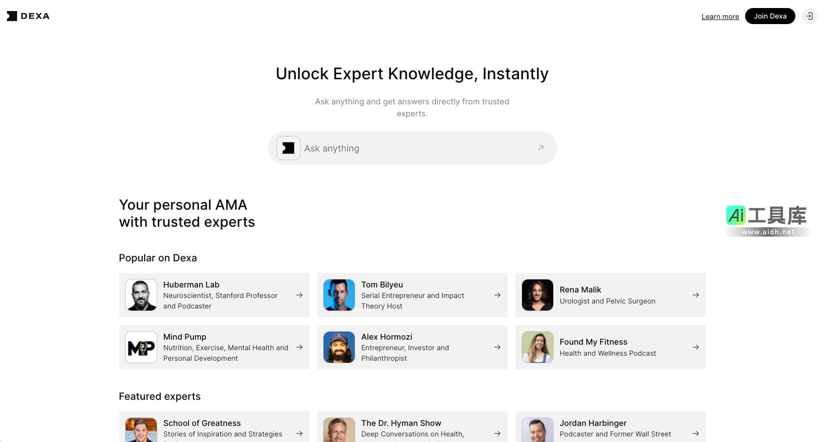 Dexa作为一个创新的AI平台,旨在为用户提供一个全新的知识获取途径。无论是健康、心理、商业还是科技领域,Dexa都能为用户带来来自全球顶级专家的直接解答,让知识获取变得更加高效和精准。