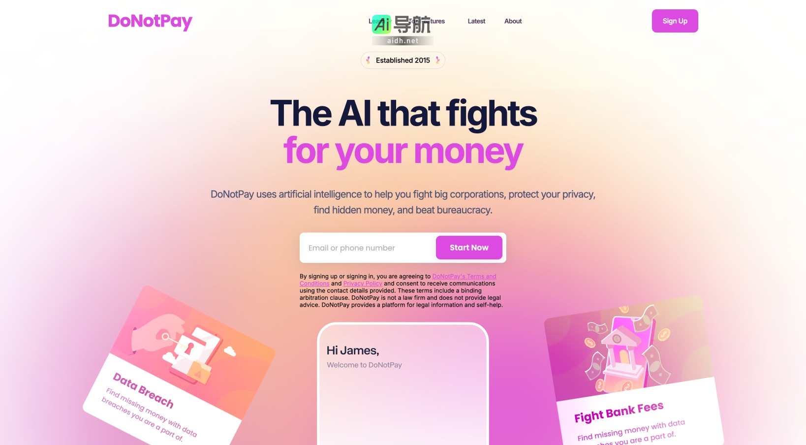 DoNotPay是一款利用人工智能技术帮助用户与大型企业抗争、保护隐私、寻找隐藏资金以及打破官僚主义的创新平台。自2015年成立以来,DoNotPay致力于为消费者提供超过100种AI驱动的工具,帮助他们重新掌控自己的金钱和时间,获得应得的权益。