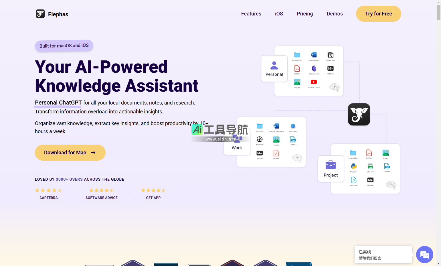 Elephas是一款强大的AI助手,旨在帮助用户管理、组织和分析本地文档、笔记和研究数据。通过提供一个智能的“Super Brain”(超级大脑),Elephas 帮助用户整合分散的信息,并从中提取有价值的见解,从而提升工作效率,节省大量时间。