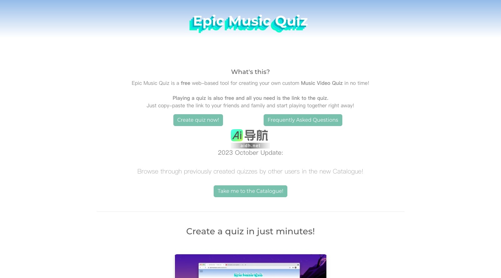 EpicMusicQuiz 是一个免费的网页工具,旨在帮助用户快速创建自定义的音乐视频测验。无论是创建还是参与测验,用户都无需支付任何费用,只需通过链接分享给朋友和家人,即可立即开始一起游戏。