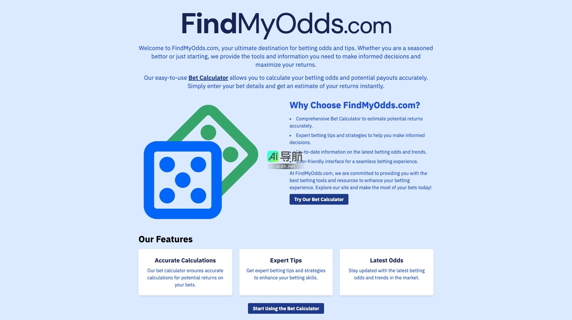 在 FindMyOdds.com,我们致力于为您提供最佳的投注工具和资源,以提升您的投注体验。探索我们的网站,充分利用您的投注机会,今天就开始使用我们的投注计算器吧!请负责任地进行博彩,如有博彩问题,请寻求帮助。
