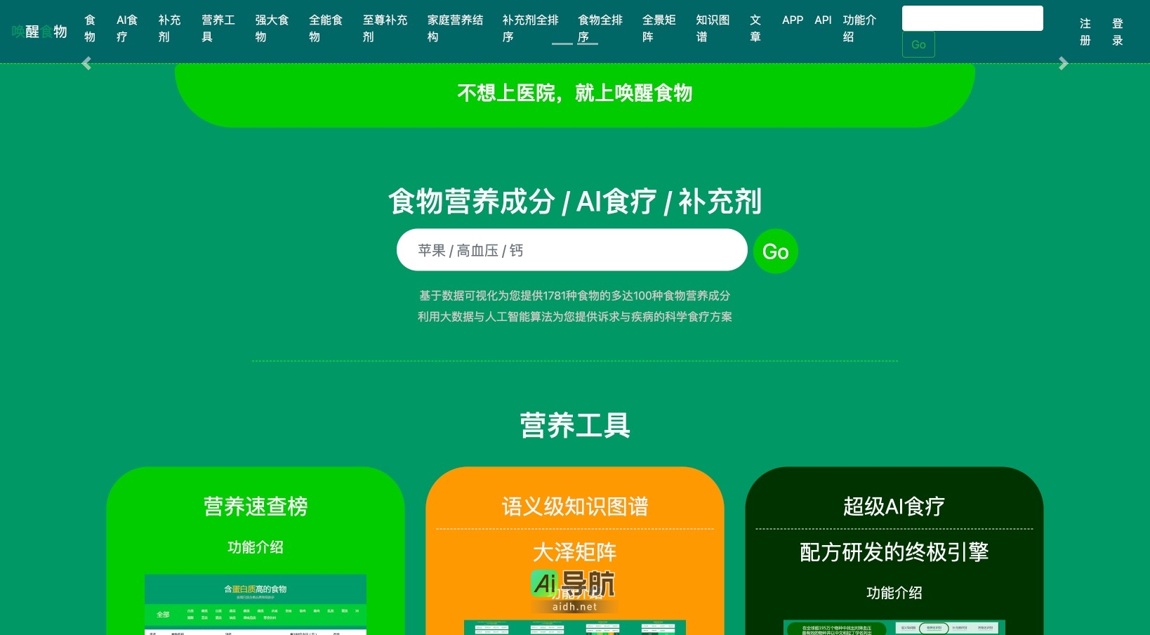 唤醒食物是一个致力于提供科学食疗方案和营养健康服务的平台,利用大数据和人工智能技术,为用户提供全面的食物营养成分分析和个性化的健康建议。该网站的主要功能和特点包括: