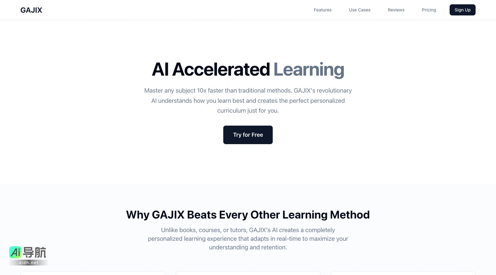 GAJIX是一款革命性的AI学习平台,旨在帮助用户以传统方法的十倍速度掌握任何学科。其核心优势在于GAJIX的AI能够理解每位用户的学习方式,进而为其量身定制个性化的学习课程。以下是GAJIX的主要特点和功能: