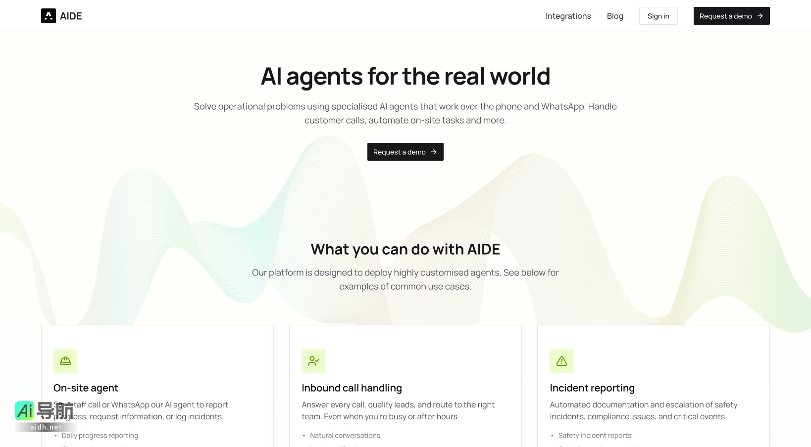 AIDE是一款专注于解决实际运营问题的人工智能平台,旨在通过电话和WhatsApp等渠道提供高度定制化的AI代理服务。以下是AIDE的主要功能和应用场景: