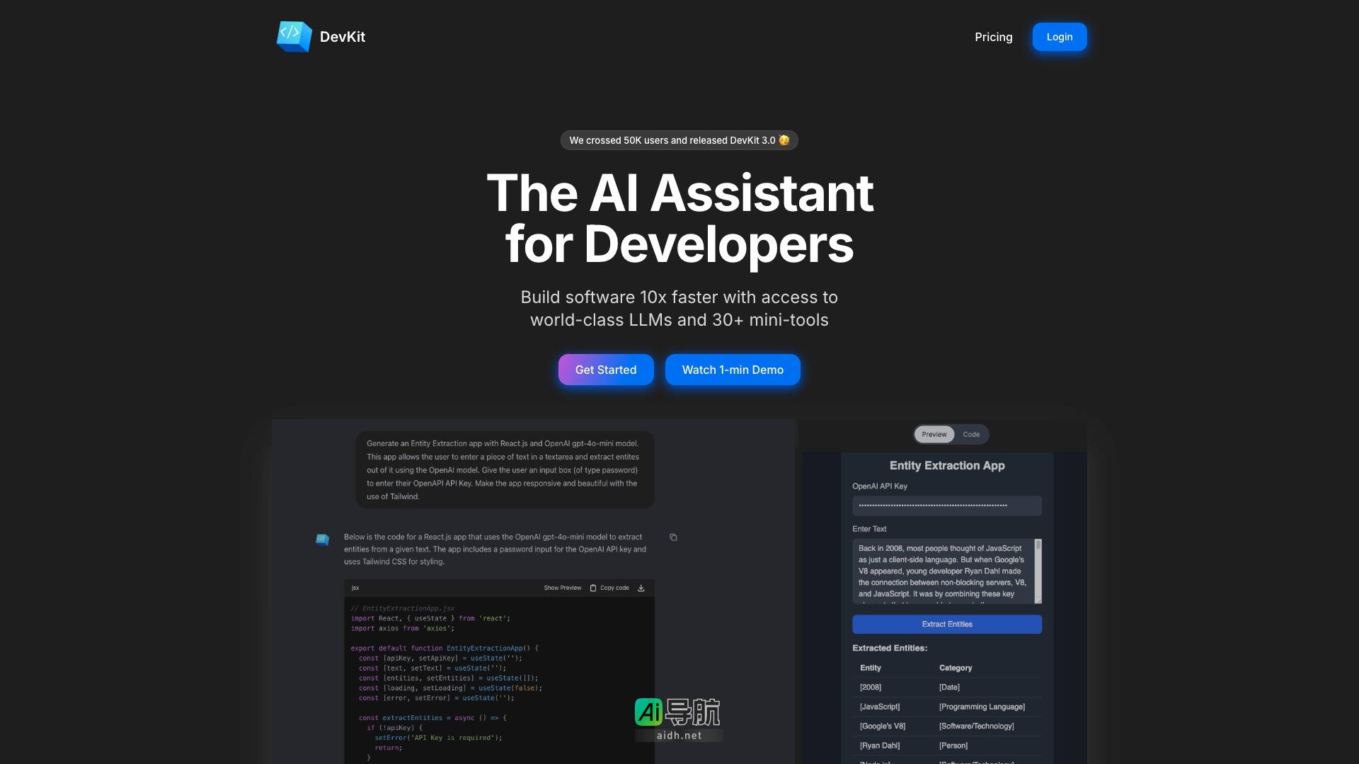 DevKit 是一款专为开发者设计的 AI 助手,旨在帮助用户以更快的速度构建软件。通过访问世界级的语言模型和 30 多种迷你工具,DevKit 使开发者能够在短短几秒内完成复杂的任务,从而节省大量时间。以下是 DevKit 的主要功能和特点:
