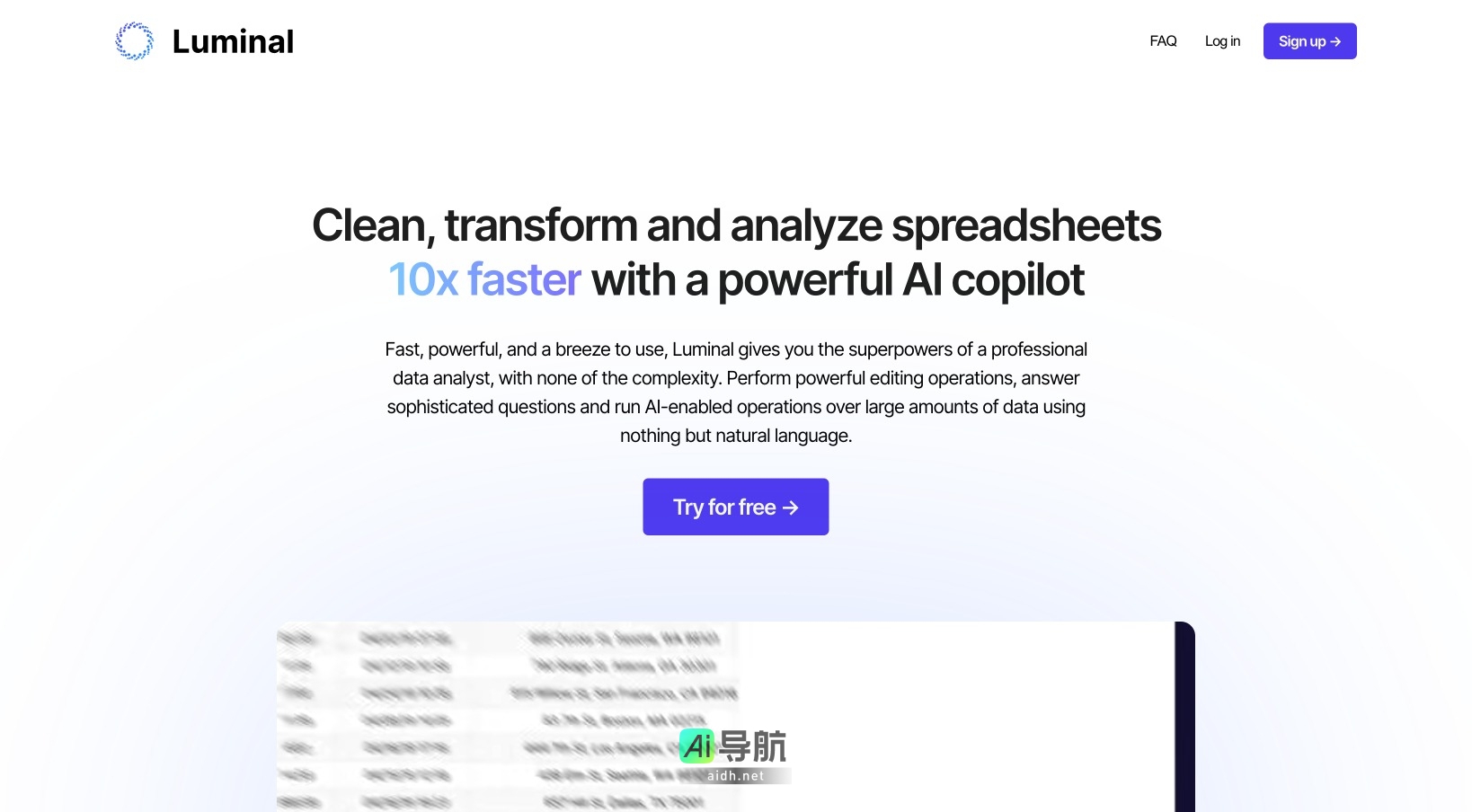 Luminal是一款强大的AI助手,旨在帮助用户以10倍的速度清理、转换和分析电子表格。它的设计理念是让每个人都能像专业数据分析师一样高效工作,而无需面对复杂的操作。Luminal的主要功能和特点包括: