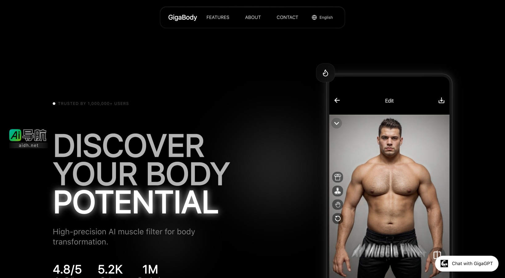 GigaBodyAI 是一款专注于身体转型的高精度人工智能应用,致力于帮助用户发现自身的身体潜力。该应用已获得超过100万用户的信任,评分高达4.8/5,评论数量达到5200条,下载量突破100万次,成为一款广受欢迎的健身工具。GigaBody AI 的核心功能包括: