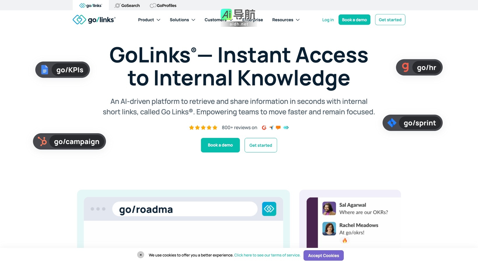 GoLinks是一款基于人工智能的内部知识管理平台,旨在通过短链接(Go Links®)快速检索和分享信息,帮助团队更高效地工作。以下是GoLinks的主要特点和功能: