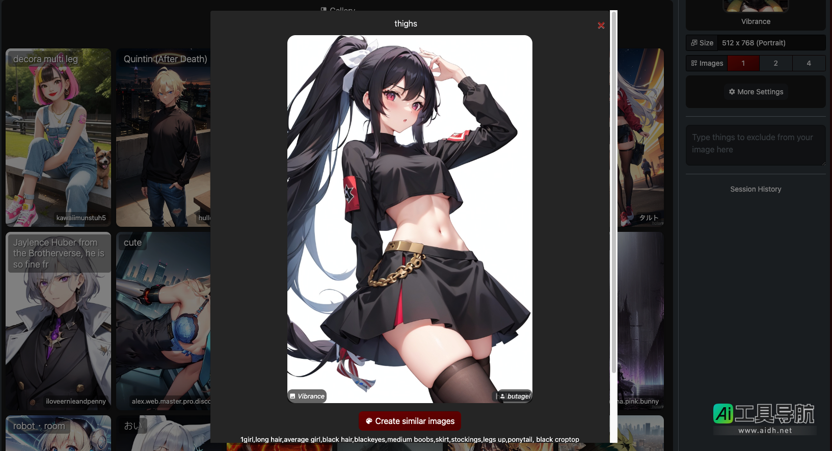 1️⃣ 输入 Prompt 描述(示例:”二次元女孩,金色长发,蓝色眼睛,穿着和服,在樱花树下”) 2️⃣ 选择 AI 模型(如 Vibrance、Aika、Aurora 等) 3️⃣ 调整图片尺寸 & 风格 4️⃣ 点击 “Create” 开始生成 5️⃣ 下载 & 分享你的 AI 艺术作品!