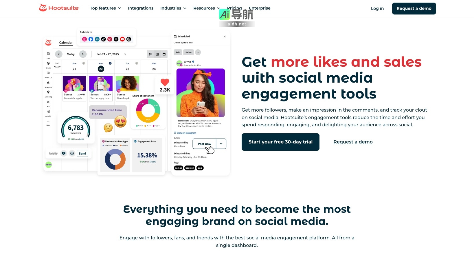 Hootsuite是一款强大的社交媒体管理平台,旨在帮助品牌提升社交媒体的参与度和影响力。通过其一体化的仪表盘,用户可以轻松管理多个社交媒体账户,优化内容发布,提升品牌与受众之间的互动。