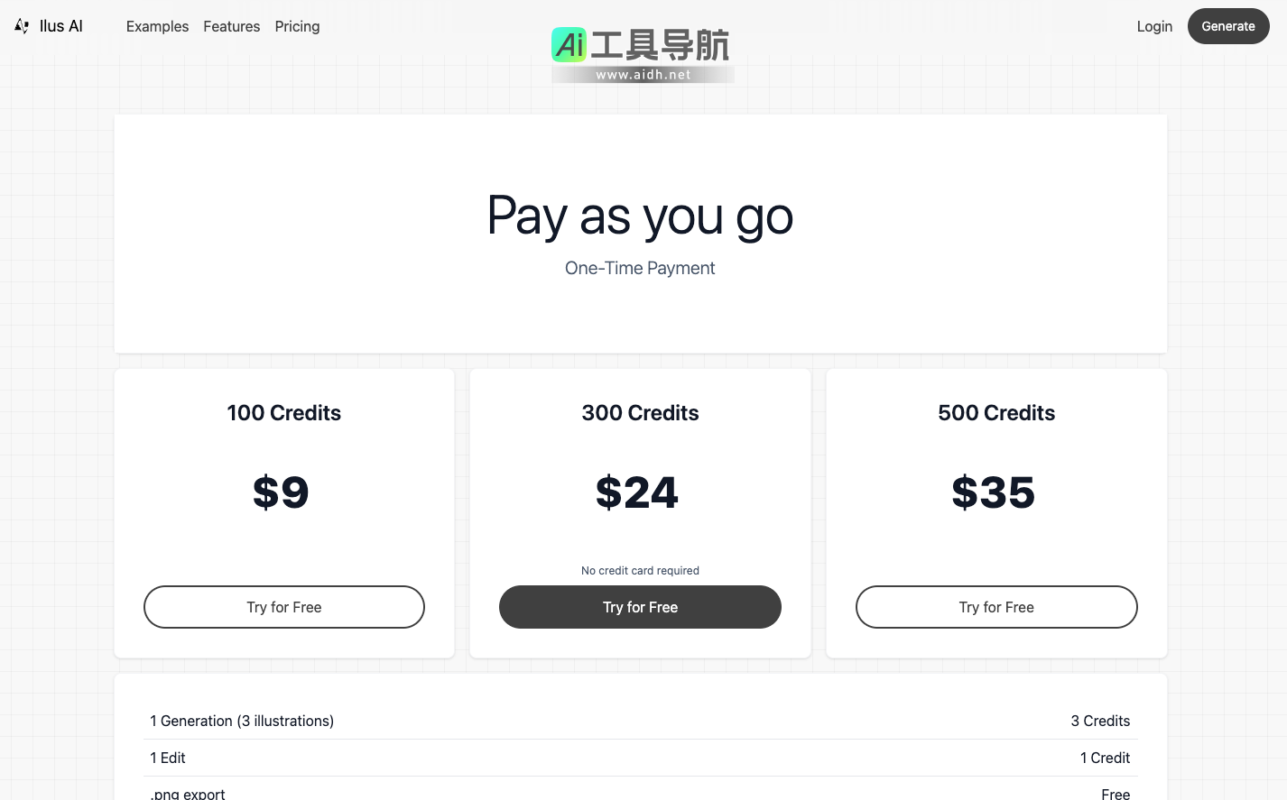 此外,Ilus AI还提供了试用版,用户可以在不需要信用卡的情况下,免费试用其插画生成工具,体验其高效、便捷的创作流程。根据需要,用户还可以选择购买100个积分、300个积分或500个积分,通过这些积分来生成和编辑插画,确保可以灵活满足各种创作需求。