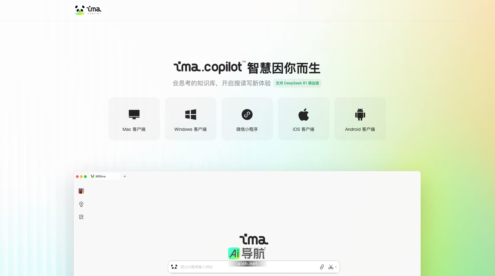 ima.copilot(简称ima)是一款以知识库为核心的智能工作台产品,已接入腾讯混元大模型和DeepSeek R1模型满血版。ima是搜、读、写一体的效率工具,旨在帮助有较强知识获取、信息处理、内容输出需求的用户,提升学习、办公效率。