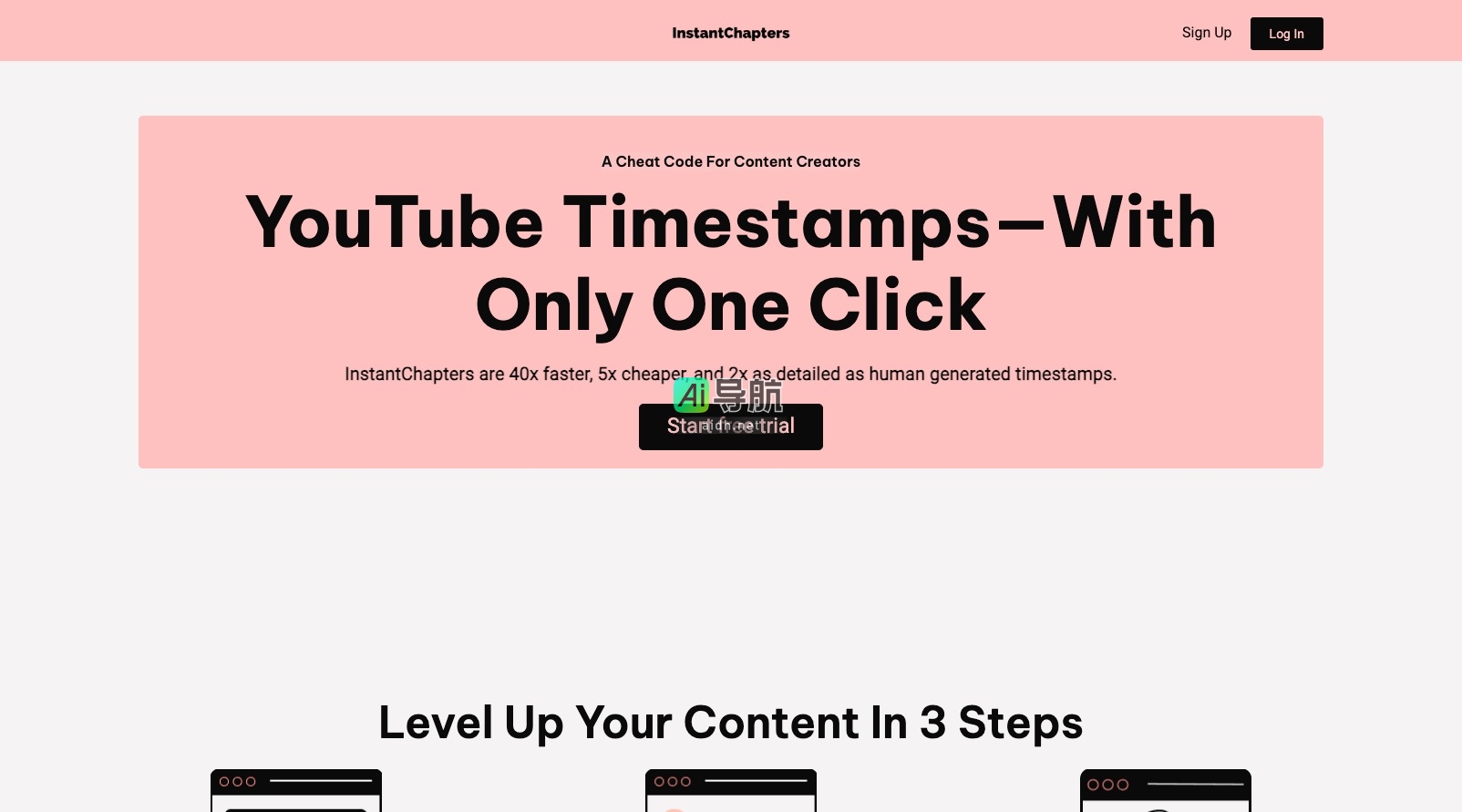 Timestamped Chapters For Your YouTube Videos... With Only One Click. Find out how you can use InstantChapters to generate timestamped chapters 40x faster, 5x cheaper, and 2x as detailed as human generated work.