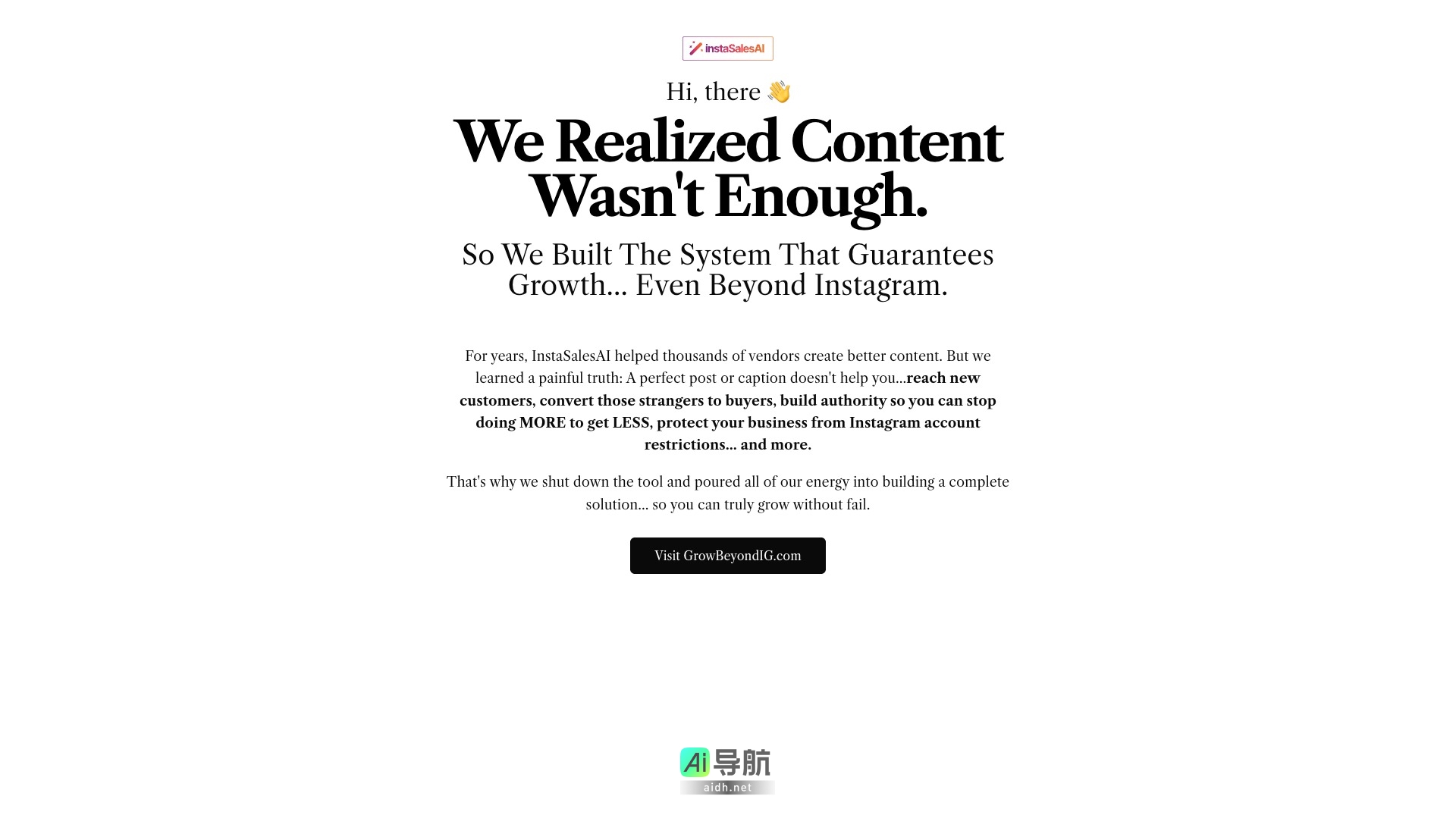 InstaSalesAI致力于帮助用户实现业务的持续增长,超越传统社交媒体平台的限制。该网站的核心理念是,仅仅依靠优质内容并不足以确保业务的成功,因此他们开发了一个全面的解决方案,旨在帮助用户更有效地吸引新客户并提高转化率。