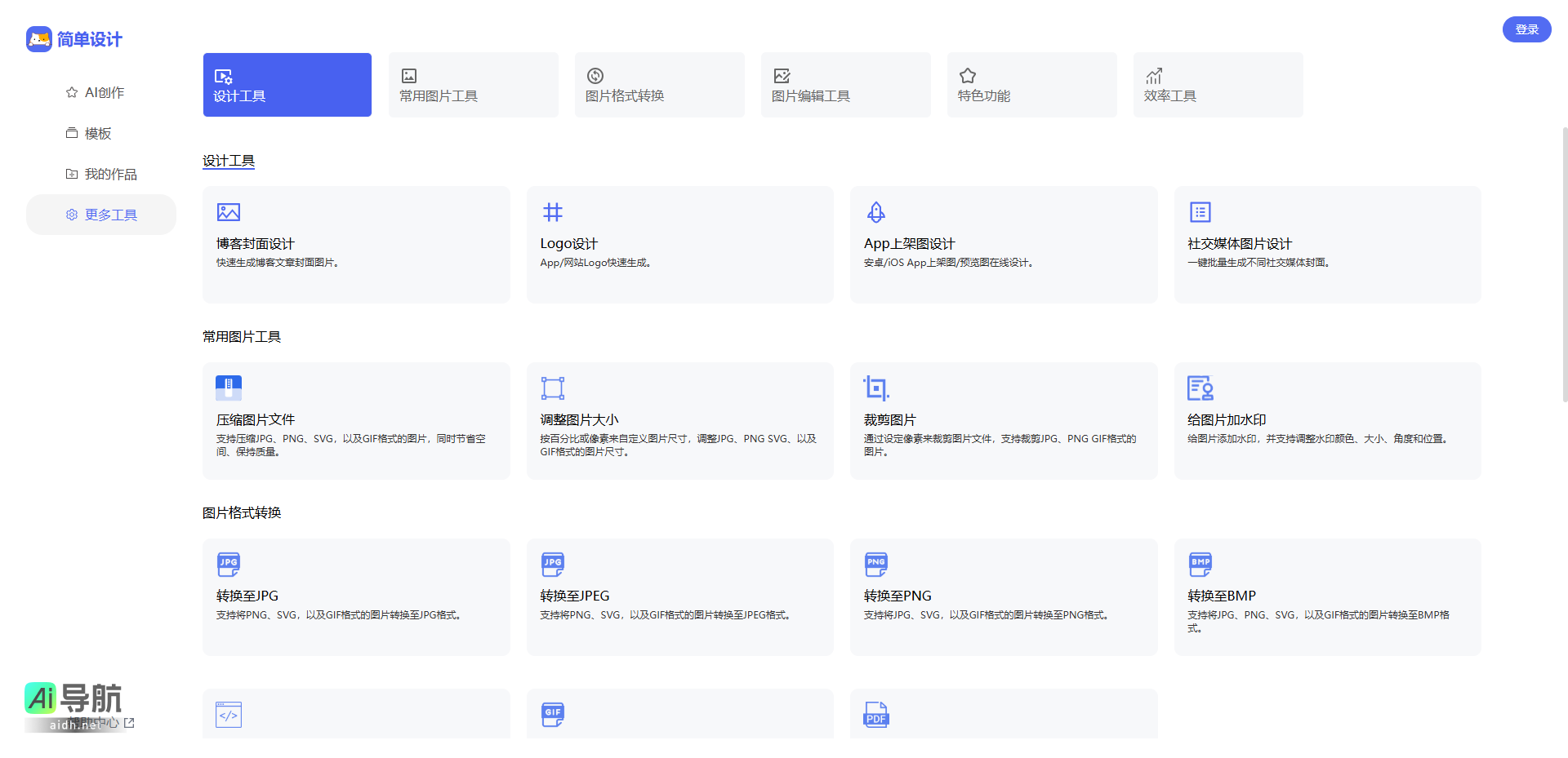 - 常用图片工具:包括图片裁剪、图片压缩、图片加水印等功能。