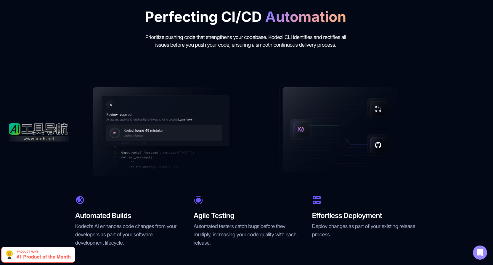 在现代开发过程中,CI/CD(持续集成与持续交付)已经成为开发团队必不可少的一部分。Kodezi通过自动化构建和部署功能,帮助开发团队简化这一流程。通过Kodezi,团队可以确保每次代码提交前,所有潜在的代码问题都被自动检查和修复。这不仅提升了代码的稳定性,也减少了因为手动操作而可能引发的错误和延迟,从而保证了软件交付的高效性和稳定性。