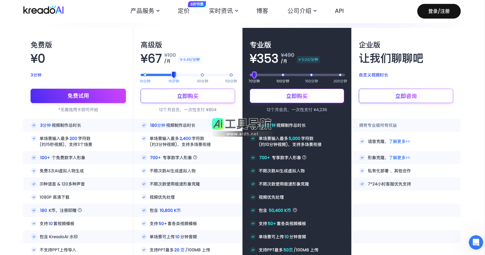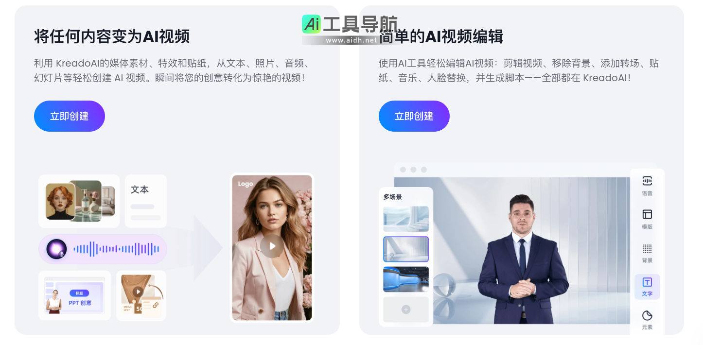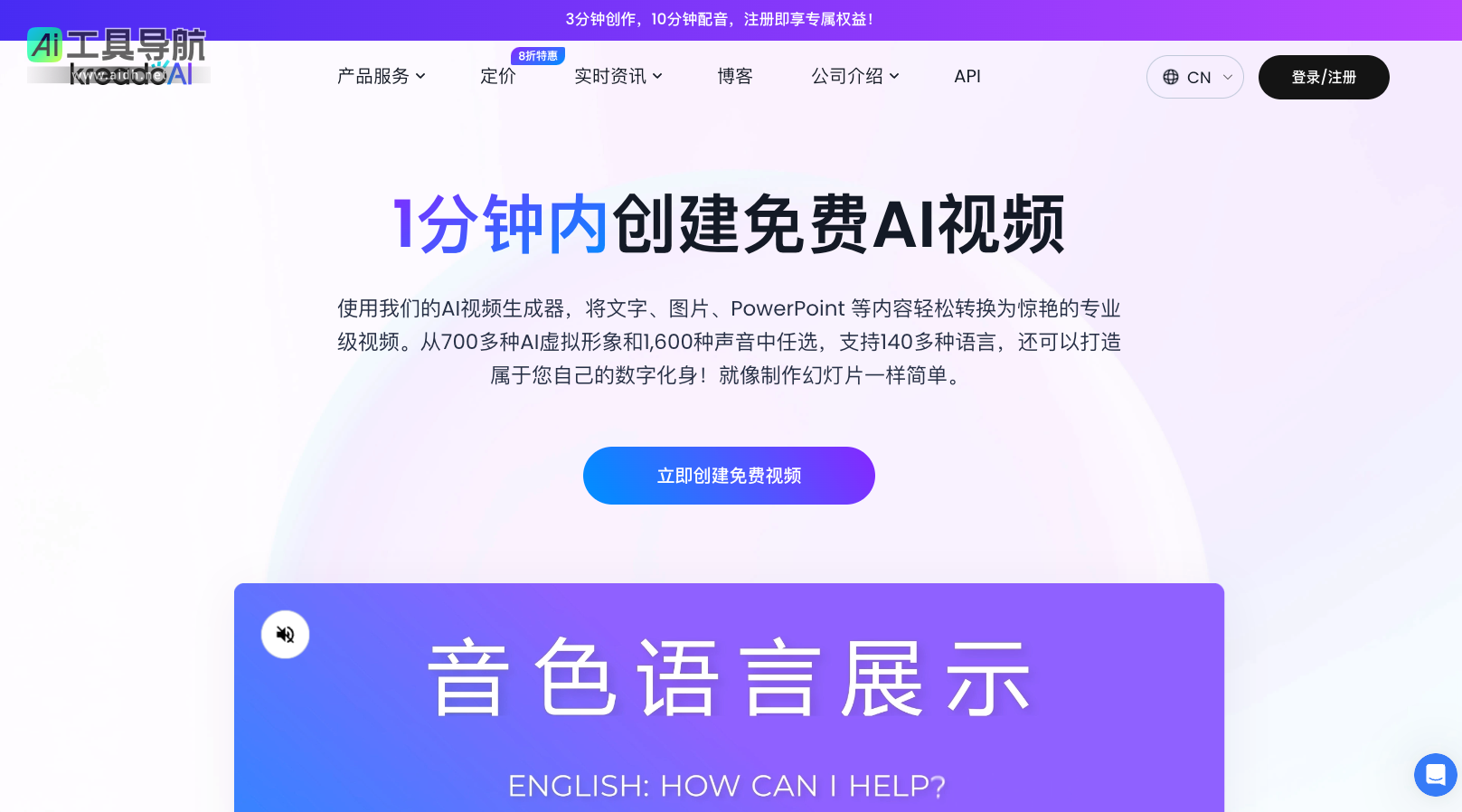 KreadoAI的最大亮点在于它能够帮助用户快速创建高质量的AI视频,无论是营销推广、培训教育、客户服务还是个人创作。其使用简便,用户只需简单输入文本或上传图片、幻灯片等内容,AI即能将其转化为引人注目的数字人视频。通过KreadoAI,视频创作的门槛大幅降低,用户可以在几分钟内生成真实感十足的AI视频,大大节省了时间和成本。