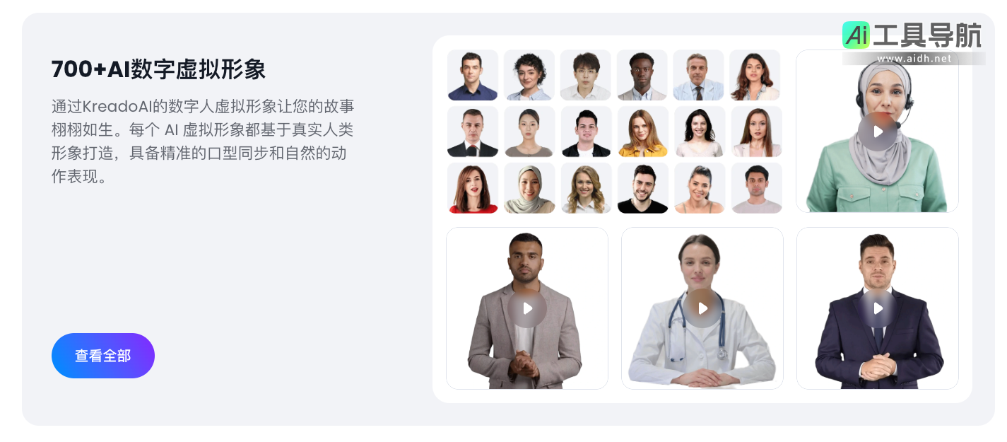 KreadoAI为用户提供了超过700种数字虚拟形象,包括各种人种、性别和风格,用户可以选择最符合需求的形象,或者直接通过摄像头创建自定义虚拟人物。每个数字人形象都具有极高的真实性,具备精准的口型同步和自然的动作表现,能够为视频内容增添更多生动和真实的元素。