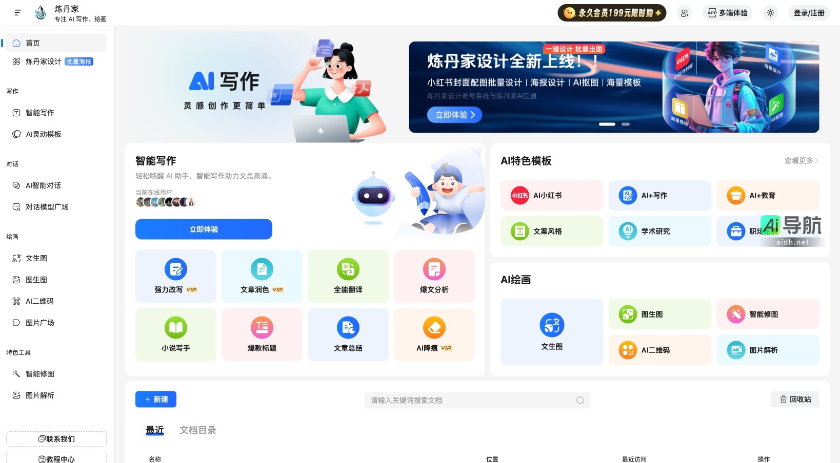 此外,炼丹家AI推出了永久会员套餐,限时仅需199元,用户可享受更全面的服务和功能,提升创作效率。适合写手、设计师、教育工作者等多种人群使用,是一个集创作、设计于一体的智能平台。