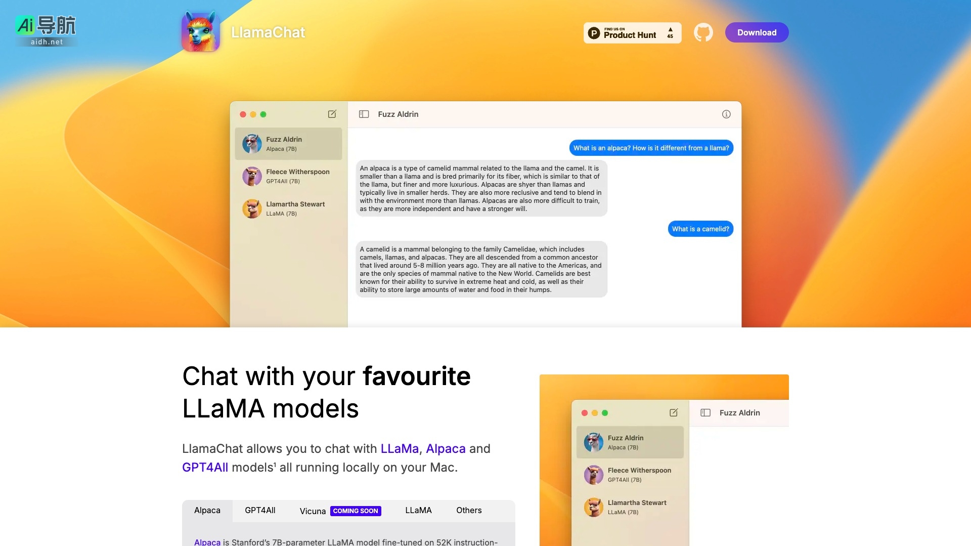 LlamaChat是一款强大的聊天应用程序,允许用户与多种LLaMA模型进行互动,包括Alpaca和GPT4All模型,所有这些模型均在用户的Mac上本地运行。以下是LlamaChat的一些主要特点和功能: