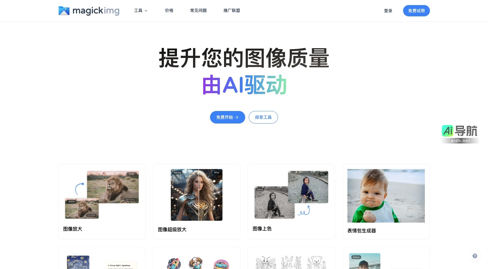 magick img 是一款由人工智能驱动的图像处理工具,旨在提升用户的图像质量,帮助用户发现每张图像中的新潜力。该工具结合了先进的深度学习算法,提供多种功能,适合个人和专业用户使用。
